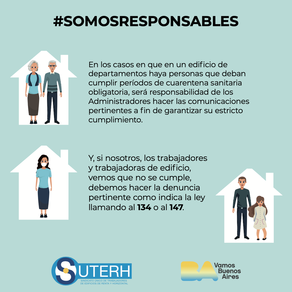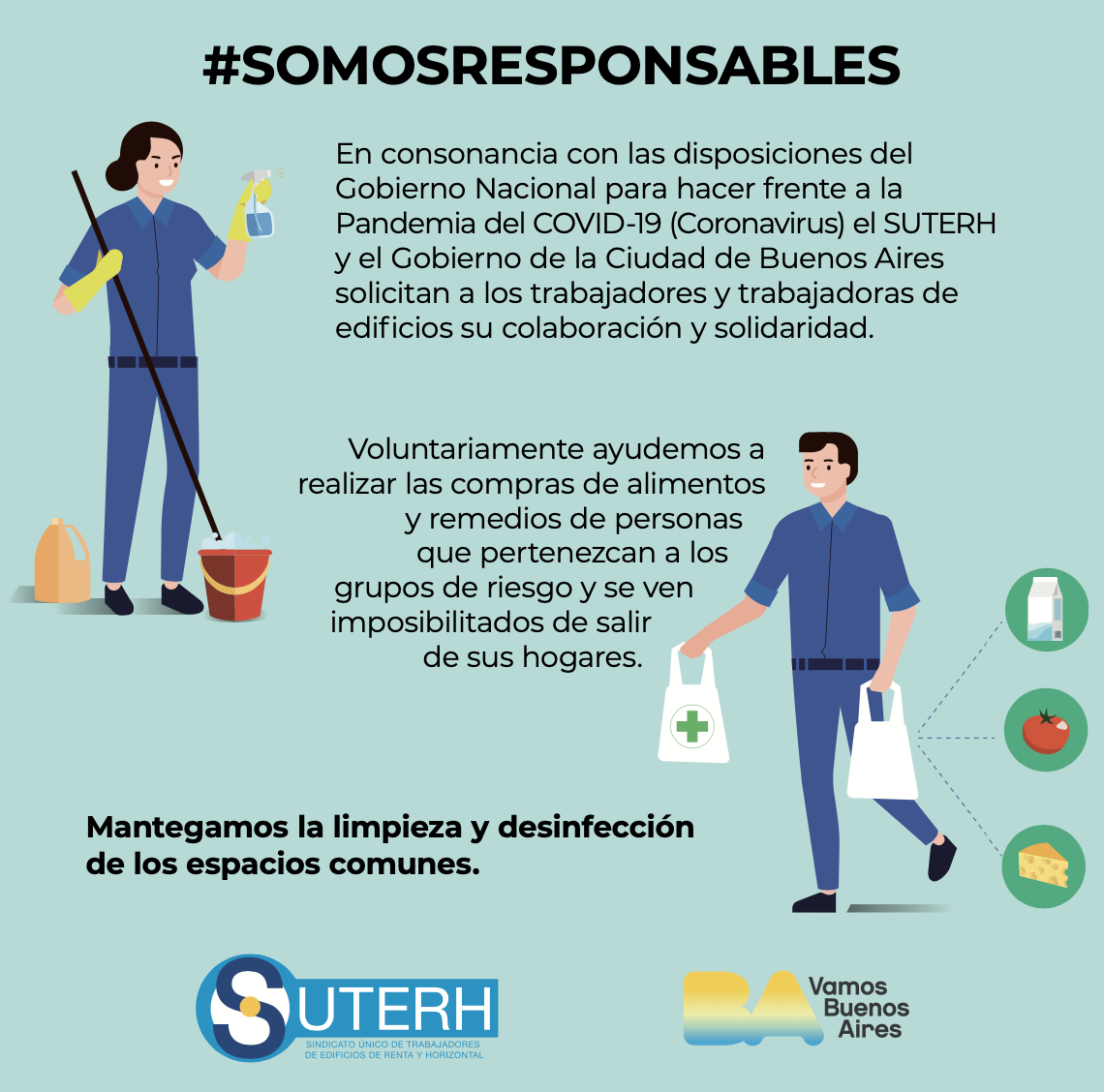 El convenio firmado entre la Secretaría de Atención Ciudadana y Gestión Comunal y el sindicato, compromete a SUTERH a brindar información que promueva acciones solidarias por parte de los trabajadores y trabajadoras de edificios para la comunidad como son la correcta higienización de los espacios comunes, la contribución con hacer observar el cumplimiento del aislamiento, y la posibilidad de asistir voluntariamente en el abastecimiento de quienes formen parte del grupo de alto riesgo sanitario en caso de contagio.